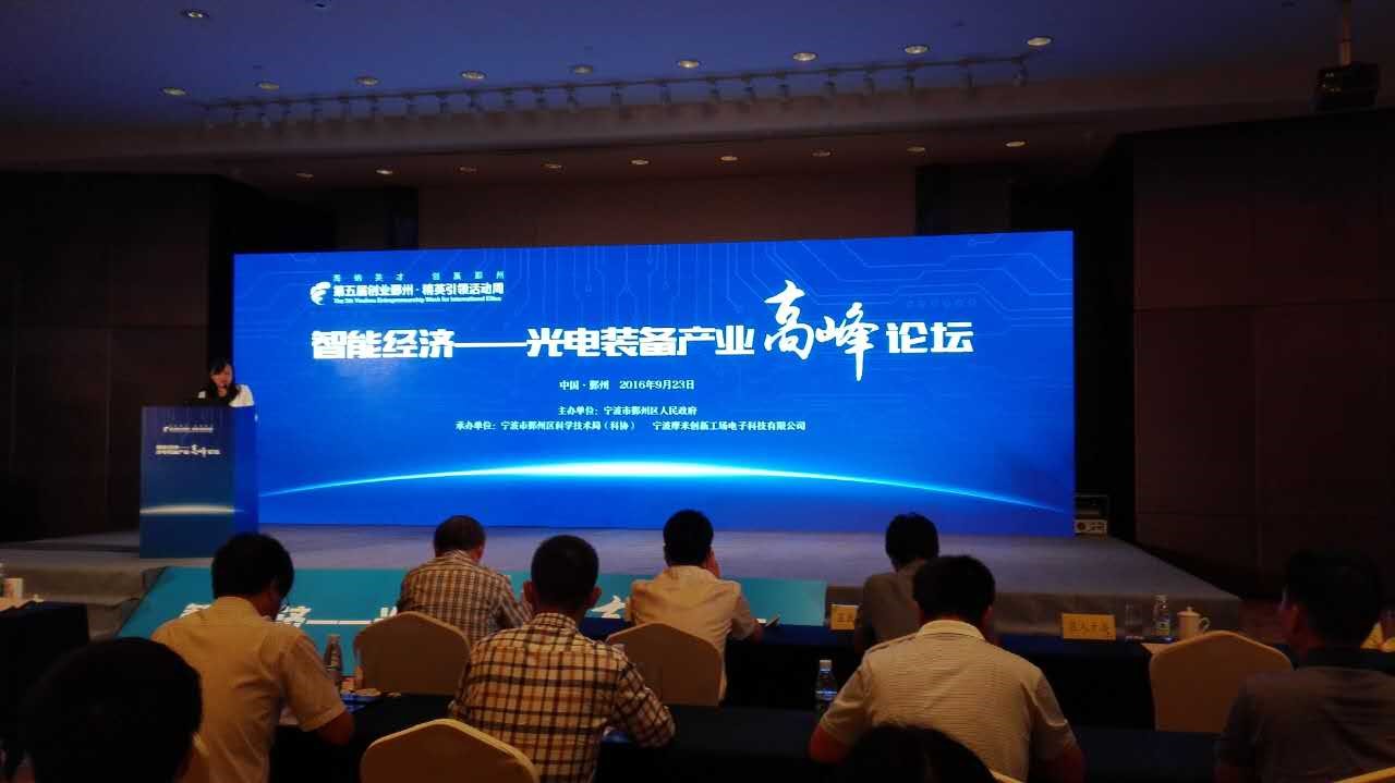 2016年9月23日上午,我司受鄞州區(qū)科 技局邀請,參加了在寧波南苑環(huán)球酒店舉行的“智能經(jīng)濟(jì)——光電裝備產(chǎn)業(yè)高峰論壇”活動。