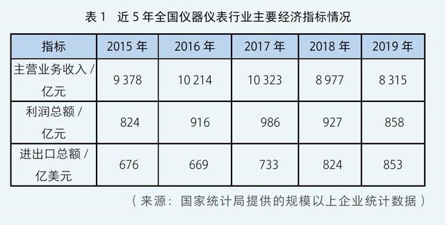 特別是2019年,我國儀器儀表行業規模繼續擴大,全年走勢先抑后揚,營收和利潤均為正增長,并且均高于機械工業和全國工業平均增幅。全年規模以上企業為4 948家,營業收入8 315億元,同比增長6.52%;利潤總額858億元,同比增長5.12%。2019年,全行業進口528億美元,增長1.29%;出口325億美元,增長7.62%,逆差約203億美元。