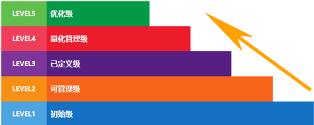CMMI全稱為Capability Maturity Model Integration,即“軟件能力成熟度模型集成”,是由美國國防部、卡內基·梅隆大學和美國國防工業協會共同開發和研制。作為全球軟件界規格最高、難度最大的認證之一,CMMI認證已成為業內衡量軟件企業工程開發能力的重要標志。CMMI認證共分為5個級別:
